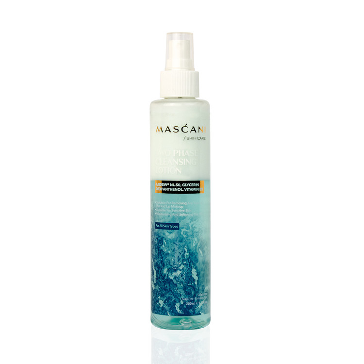 آرایش پاک کن دو فاز ماسکانی(فاقد الکل و پارابن) با به کارگیری ترکیبات تغذیهکننده و مرطوبکننده ، بدون ایجاد حساسیت یا تحریک پوستی ، انواع آرایش را پاک میکند. این آرایش پاککن قابل استفاده برای انواع پوست می باشد و حتی پوست های حساس هم می توانند از آن استفاده کنند. محلول پاک کننده آرایش دو فاز بر پایه سیلیکون می باشد که لطافت ابریشمگونهای در سطح پوست ایجاد میکند.