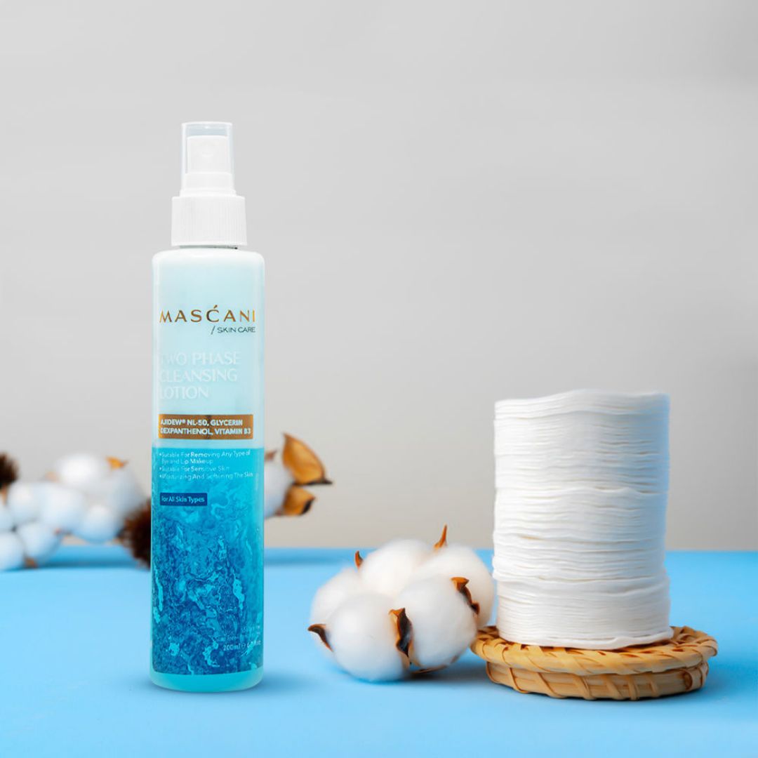 آرایش پاک کن دو فاز ماسکانی(فاقد الکل و پارابن) با به کارگیری ترکیبات تغذیهکننده و مرطوبکننده ، بدون ایجاد حساسیت یا تحریک پوستی ، انواع آرایش را پاک میکند. این آرایش پاککن قابل استفاده برای انواع پوست می باشد و حتی پوست های حساس هم می توانند از آن استفاده کنند. محلول پاک کننده آرایش دو فاز بر پایه سیلیکون می باشد که لطافت ابریشمگونهای در سطح پوست ایجاد میکند.